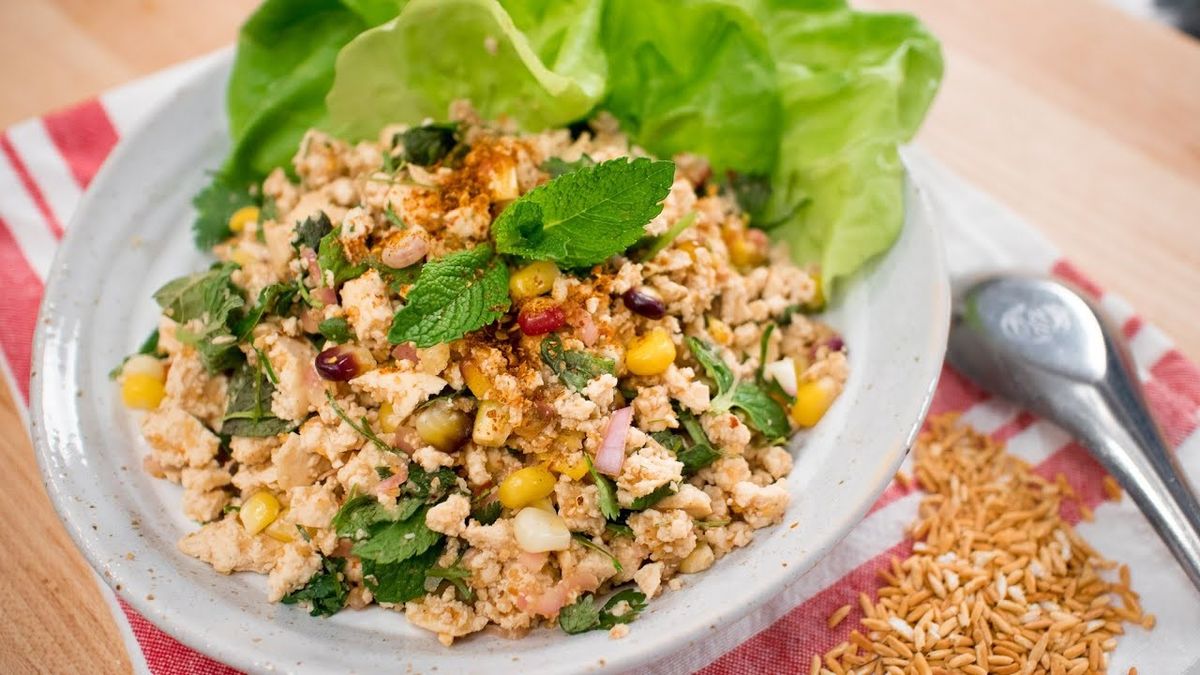 در این رابطه، کافی است گوشت را با مقداری توفو جایگزین کنید که نتیجه، به همان اندازه خوشمزه است. بعلاوه این سالاد، از انواع ادویهها تشکیل شده که طعمی تند به آن میبخشند. اما اگر میخواهید از این تندی بکاهید، میتوانید آنرا با کدو تنبل و پیاز همراه کنید.