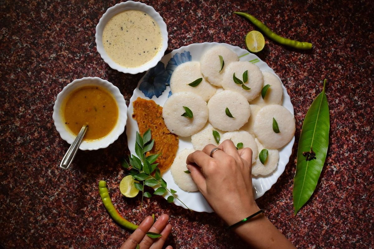 Idli Sambar، یک صبحانه محبوب در جنوب کشور است. ایدلی نوعی کیک برنجی خوش طعم است که از بخارپز کردن خمیری متشکل از عدس سیاه تخمیر شده و برنج آسیاب شده تهیه میشود. این ایدلی، در سامبار غوطه ور میشود که یک سوپ تند یا کاری با پایه عدس است و با ترکیبی از ادویهها، لوبیا، سیب زمینی، پیاز کوچک و مقداری آب تمر هندی درست میشود.