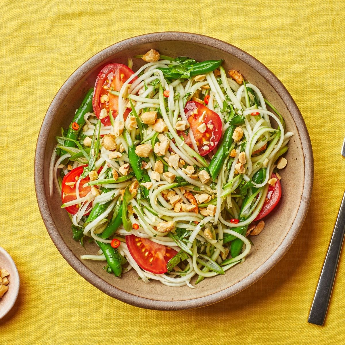 در سفر با تور تایلند، با Som Tam نیز آشنا خواهید شد که یک سالاد پاپایای خوشمزه و سالم بوده و انتخابی عالی برای کسانی است که به دنبال غذاهای حلال تایلندی یا غذای گیاهی هستند. این گزینه، از پاپایای سبز تازه خام خرد شده، سیر، فلفل قرمز، لوبیا سبز، گوجه فرنگی گیلاسی، بادام زمینی ترد، میگوی خشک یا خرچنگ شور تهیه میشود. همچنین این سالاد، معمولا با مرغ کبابی و برنج نیز به خوبی هماهنگ میشود.