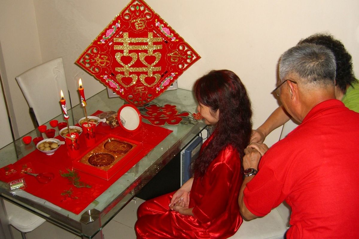 در این جشن، یک نمایش اسلایدی از عکسهای دوران کودکی عروس و داماد نیز اجرا میشود. هنگامی که یک مراسم عروسی چینی را ترک میکنید، معمولا به شما هدایای عروسی کوچکی مانند شکلات، آب نبات یا حتی عکسهایی به اندازه کیف پول گرفته شده از زوج قبل از عروسی داده میشود.