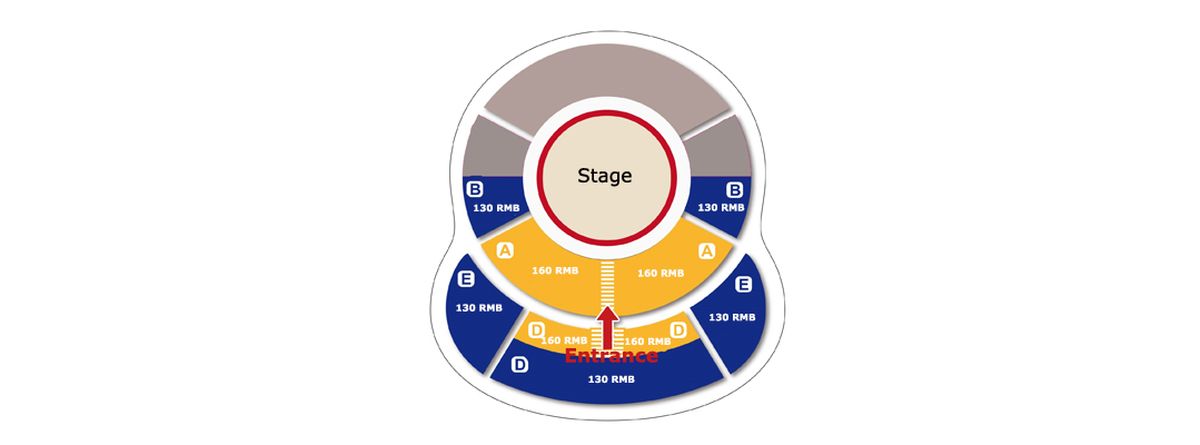 سیرک شاد اما برنامهای ارزانتر و البته در سانلی کوچکتر است و قیمت بلیط آن تنها شامل دو دسته ۱۶۰ و ۱۳۰ یوان شده که در عکس زیر، جایگاههای زرد رنگ ۱۶۰ یوان هستند و جایگاههای آبی بلیطهای ارزانتر را شامل میشوند.