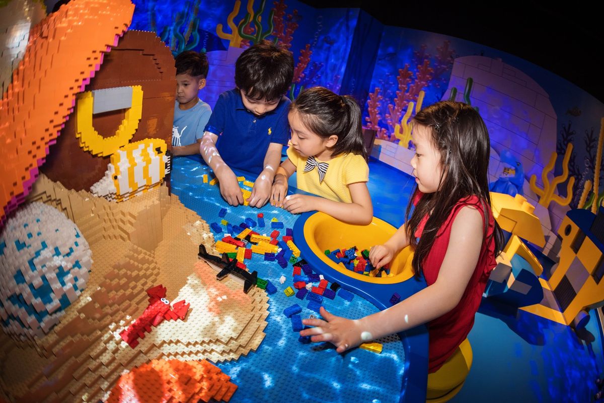 اما بخش جذاب برای کودکان، سالن بزرگی است که برای ساخت لگو در نظر گرفته شده و بچهها آزادانه میتوانند از تمامی قطعات لگویی آنجا استفاده کنند. البته چندین مربی در آنجا قرار گرفته تا به بچههای برای ساخت لگوهای جالب توجه و خاص کمک کنند. جدیدا یک بخش جدید نیز در این سالن افتتاح شده که در آنجا، بچهها یاد میگیرند که چطور ماهیها و مرجانها و به طور کلی موجودات دنیای زیر آب را به صورت لگویی در لگولند دیسکاوری سنتر شانگهای بسازند.