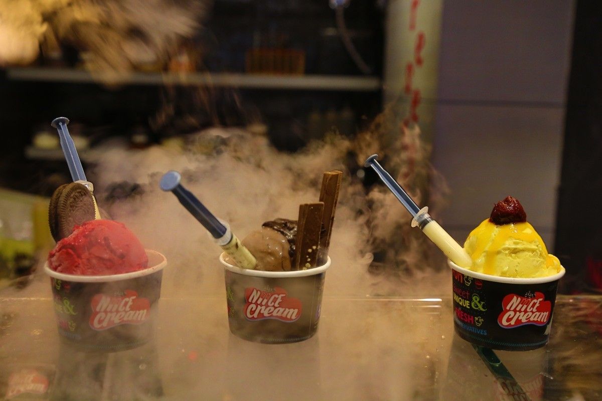 در Niice، میتوانید مخلوط بستنی با طعم موردنظرتان و متناسب با ذائقهتان را سفارش دهید و از این شاهکار نهایی لذت ببرید. یکی دیگر از ویژگیهای این بستنی فروشی دهلی، این است که میتوانید بستنی های خود را با نیتروژن مایع تهیه کنید تا طعمی دودی به آن ببخشید. اینجا یکی از سالنهای نادری است که چنین تجربهای را در دهلی ارائه میدهد. اما اگر نمیخواهید نیتروژن مایع را امتحان کنید، یک منوی جداگانه در اختیارتان قرار خواهد گرفت.