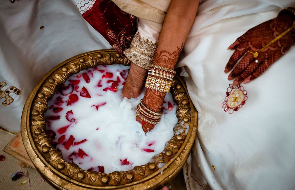 یکی از بازیها در مراسم ازدواج در هند، بازی حلقه است. این بازی، شامل یک حلقه و یک دسته سکه است که در ظرفی نقرهای قرار داده میشوند که با شیر و گل پر شده است. عروس و داماد دستهای خود را در این ظرف فرو میبرند و گفته میشود هر کسی که بتواند حلقه را پیدا کند، شریکی است که رابطه را "کنترل" خواهد کرد. در ضمن، عروس باید مراقب باشد که برای خوش شانسی، هنگام ورود به خانه داماد ابتدا با پای راست وارد شود!
