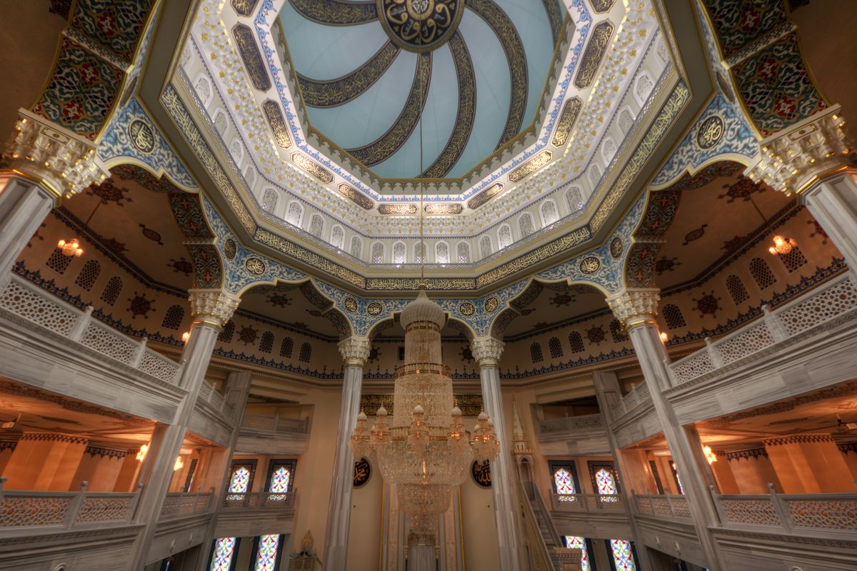 سالن طبقه اول برای نمازگزاران خانم و سالن طبقه دوم، برای آقایان درنظر گرفته شده است. جالب است بدانید این مسجد، بزرگترین قرآن جهان را در خود جای داده که با سنگهای قیمتی تزئین شده است و ۸۰۰ کیلوگرم وزن دارد. برای جابجایی کتاب از این مکان، به کمک حداقل ۱۶ نفر نیاز است!