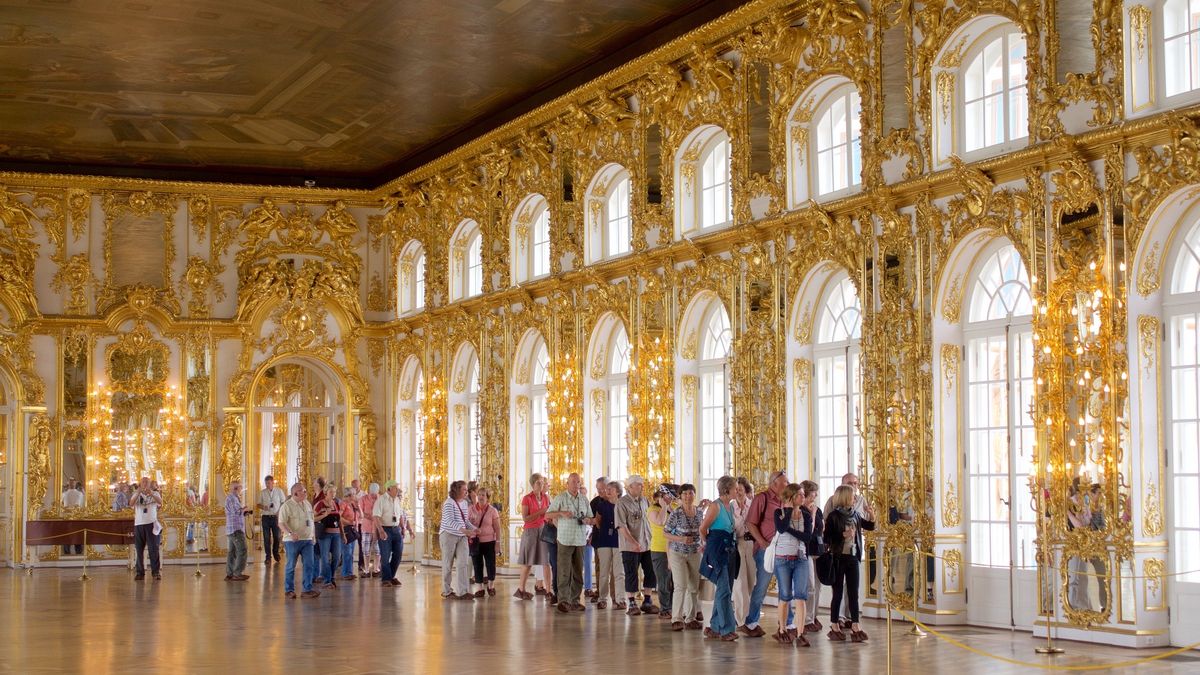 کاخ باشکوه کاترین، واقع در پوشکین حومه سن پترزبورگ، توجه گردشگران تور روسیه بسیار زیادی را با زیبایی مجللی که دارد به خود جذب میکند. این عمارت تاریخی که توانسته در طول سالها بدون هیچ آسیبی محافظت شود، نمونهای بارز از فرهنگ و ثروت اشراف روسیه است. به طوری که گشت و گذار در کاخ کاترین به بازدیدکنندگان این اجازه را میدهد تا در تاریخ روسیه به گذشته سفر کنند و شاهد ثروت مجلل امپراتورها و حاکمان این سرزمین در طول تاریخ باشند. این کاخ باشکوه اتاقهای مجلل و تالارهای سلطنتی را در خود جای داده و همه آنها با زیبایی هرچه تمام تزیین شدهاند. به طوریکه در گذشته مهمترین جشنها و مراسمات دولتی در آن برگزار میشد.