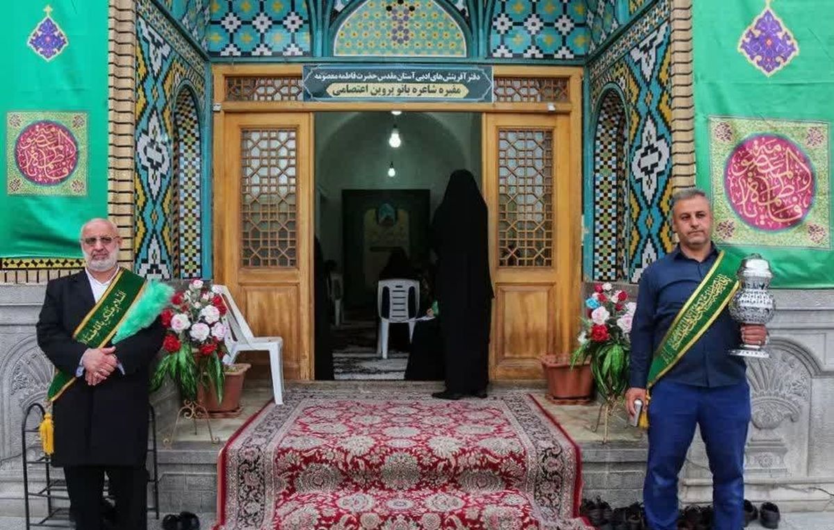 پروین شاعر مشهور و پرافتخار ایرانی یکی از پرطرفدارترین شعرای عصر معاصر است که در ۳۵ سالگی و در سال ۱۳۳۰ از دنیا رفت. آرامگاه پروین اعتصامی در یکی از اتاقهای صحن حضرت معصومه قرار دارد. آرامگاه این شاعر بزرگ، مدتها شناخته شده نبود و کمتر کسی از مکان آن آگاه بود. اما در سالهای اخیر، گردشگران بیشتری برای دیدن مقبره و ادای احترام به او به شهر قم میروند.