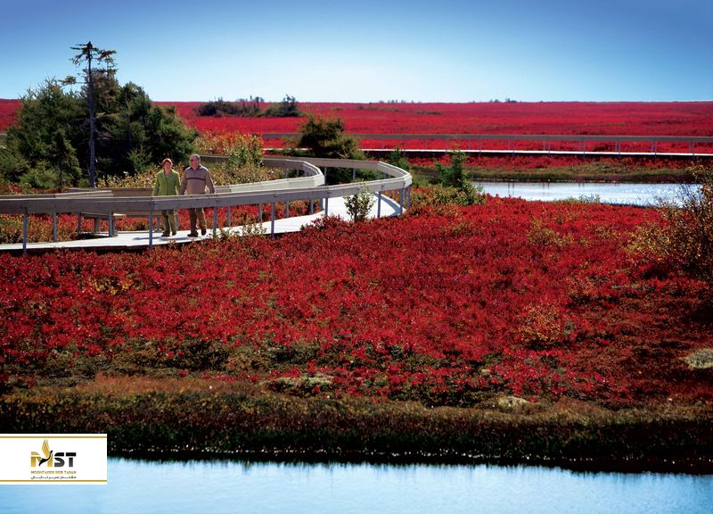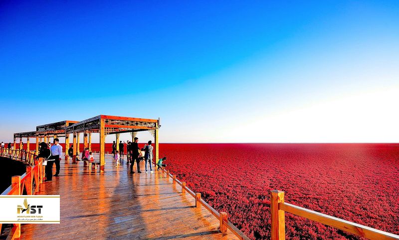 "ساحل قرمز" یک پهنهی آبی بسیار زیباست که از گیاهان قرمز پوشیده شده و یکی از جذابترین و در عین حال خاصترین مناطق طبیعت را شکل میدهد. البته این نمای زیبا در فصل پاییز شکل میگیرد، جایی که هنوز رنگ سبز درختان در برخی نقاط معلوم است، جایی که به نارنجی و زرد میزند، آب آبی رنگ نیز وجود دارد و باقی هر چه هست پتویی بزرگ از رنگ قرمز است که به روی این منطقه کشده شده. اگر قصد عکاسی دارید، حتما لنز زوم خود را ببرید تا بتوانید یک قاب بزرگ از این منظره ثبت کنید. یکی دیگر از جذابیتهای این منطقه، بیش از ۲۶۰ نوع پرندهای هستند که در آنجا زندگی میکنند.