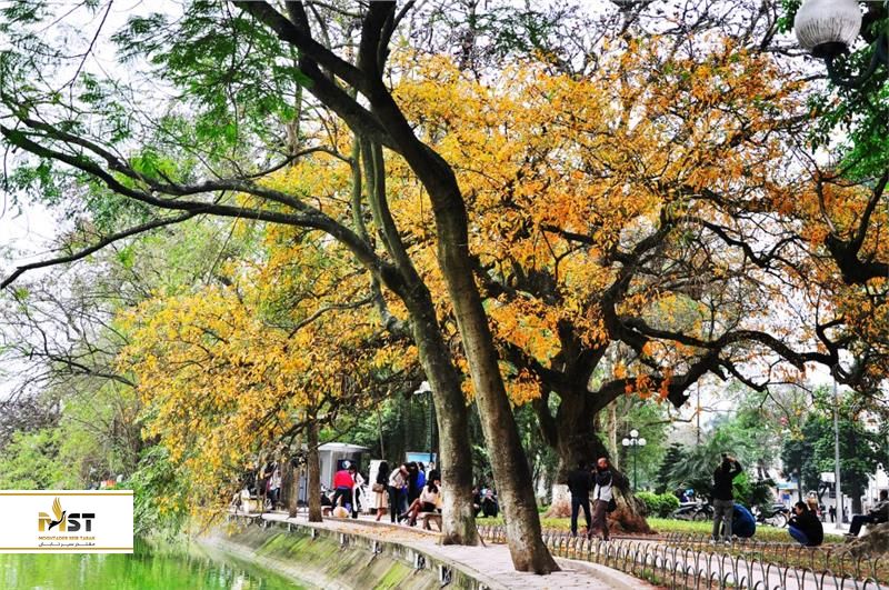 دریاچه Hoan Kiem در هانوی، با آب و هوای خنک، نور ملایم خورشید و آبهای آرام در پاییز هیچ چیزی کم ندارد. این دریاچه نقطه ای برای تجمع مردم و لذت بردن از اوقات فراغت با طبیعت است. علاوه بر این انعکاس درخشان قرمز و زرد رنگ برگ درختان بر روی سطح دریاچه منظرهای به شدت دیدنی و خیره کننده را ارائه میدهد. بسیاری از مردم فقط برای دیدن این صحنه رمانتیک در پاییز با تور ویتنام اینجا سرازیر میشوند و شما هم نباید آن را از دست بدهید!