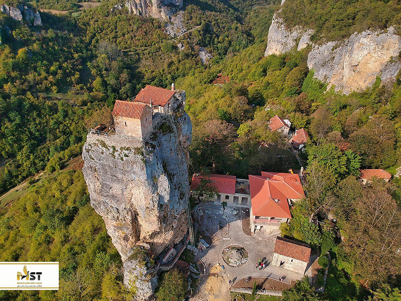 این صومعه منزوق، در فاصلهی چهل متری از سطح زمین قرار گرفت است و دور تا دور آن را جنگلی کوهستانی در بر گرفته و منظرهای زیبا را نیز به تصویر میکشد. خود صومعه برای سالهای زیبایی متروکه مانده بود تا این که راهبی در سال ۲۰۰۰ به آنجا نقل مکان کرد و در نهایت کار باز سازی آن آغاز شد و حالا گردشگران نیز با رعایت شرایط خاص، میتوانند از آنجا بازدید به عمل آورند.