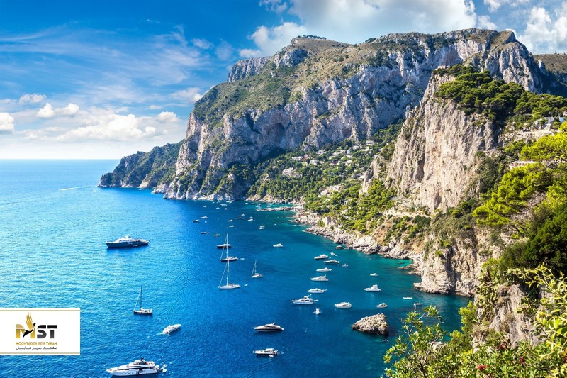جزیره کاپری پر زرق و برق، در حدود ۲۰ کیلومتری سواحل آمالفی،ایتالیا قرار گرفته و با صخرههای سر به فلک کشیده از دریای و گلهای رنگارنگ چشم هر بینندهای را نوازش میکند. یکی از محبوبترین جاذبههای توریستی کاپری غار آبی است. این غار دریایی درخشان، جایی است که مردم محلی با قایقهای کوچک گشت و گذار گردشگران را ممکن میسازند. همچنین در این جزیره میتوانید به سمت بندر مارینا رفته و با فونیکولار به شهر اصلی کاپری دسترسی پیدا کنید که شبیه یک مجموعه فیلم است. میدان اینجا پر از مردم محلی با لباس زیبا و گردشگرانی است که در حال خرید هستند. همچنین توصیه میکنیم حتما در این مکان از شهر آناکاپری نیز دیدن کنید و با بالابر به سمت مونت سولارو بروید تا مناظر فوقالعادهای از جزیره و دریا را ببینید.